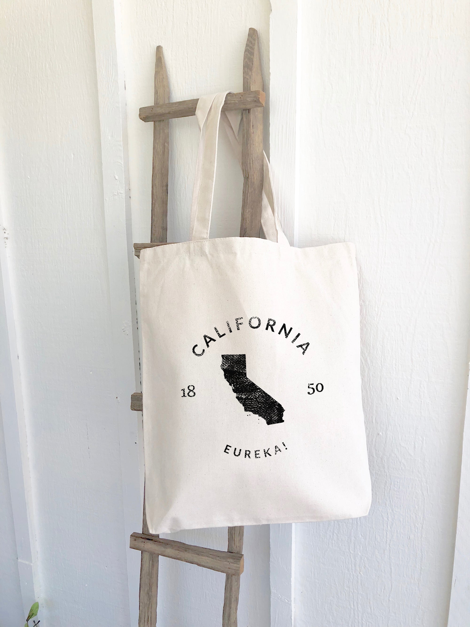 Set of 6 canvas tote bags featuring your state's established date and motto.