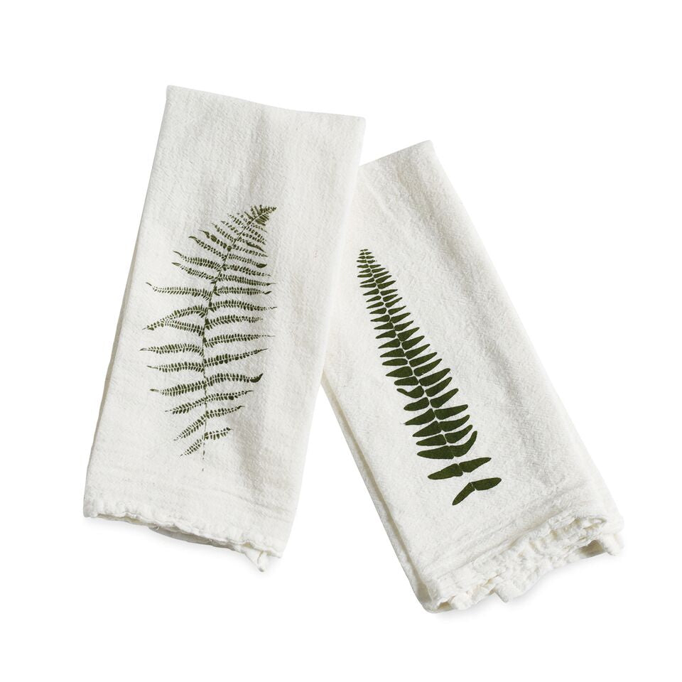 Add some wild forest pretties to your tabletop without the mess. Designs feature our hand drawn wood fern and resurrection fern, each individually screen printed on 100% flour sack cotton. These napkins are extremely soft and absorbent, meaning they work just like you want your napkins to. Plus they are machine washable and safe to bleach making them perfect on spaghetti nights!